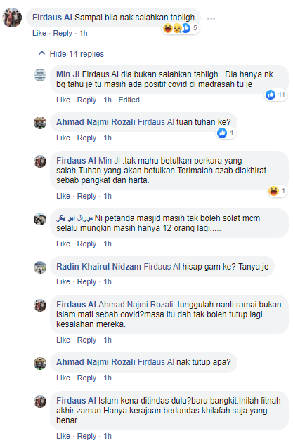 MALAYSIA: Mnerusi portal astro awani pada hari ini dengan tajuk nya “C0vid-19: Empat lagi kes dikesan di sekolah tahfiz, madrasah”, terdapat pelbagai komen komen daripada netizen. Ramai menganggap golongan golongan tabligh, madrasah yang menjadi punca penyebaran wab4k tersebut.